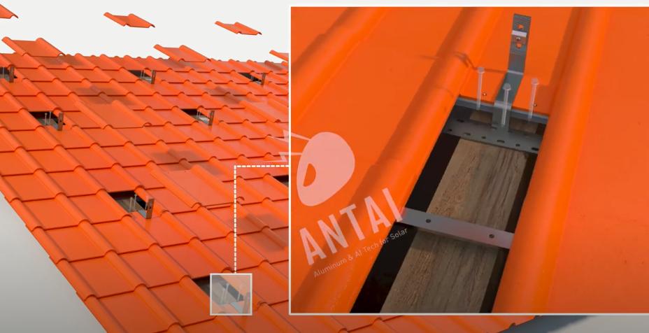 Đầu tiên, trình cài đặt của bạn Có thể đặt móc thép không gỉ dưới ngói để hệ thống của bạn được gắn trên. Trình cài đặt của bạn sẽ Tạm thời tháo gạch, lắp đặt các móc bên dưới vào mái nhà, sau đó đặt ngói trở lại giá treo và giá hệ thống từ ở đó.